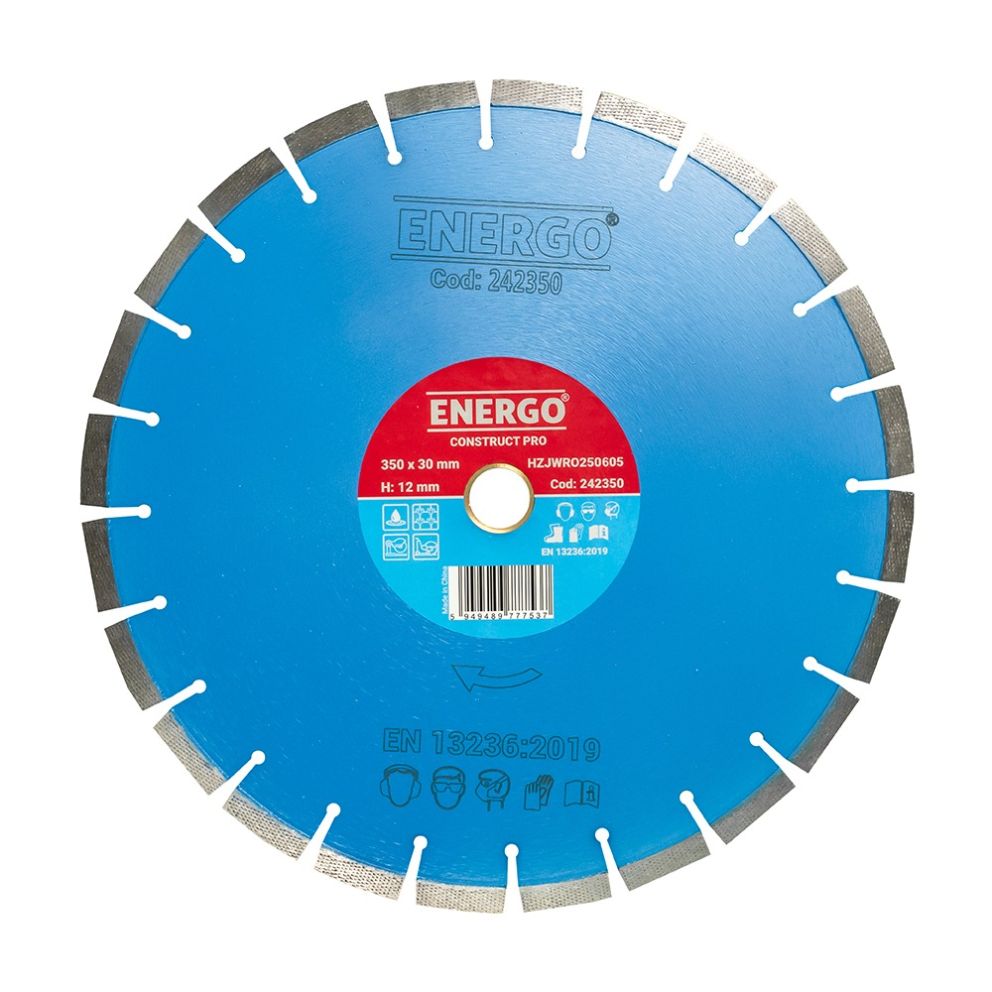 | Caracteristici suplimentare | Inaltimea sectorului diamantat: 12.0 mm Mod de utilizare: utilizare umeda Recomandat pentru utilaj: masina mobila de taiat beton/asfalt cu motor termic sau electric mese de debitat placi/dale/blocuri cu cap taiere deasupra pe sine de glisare |