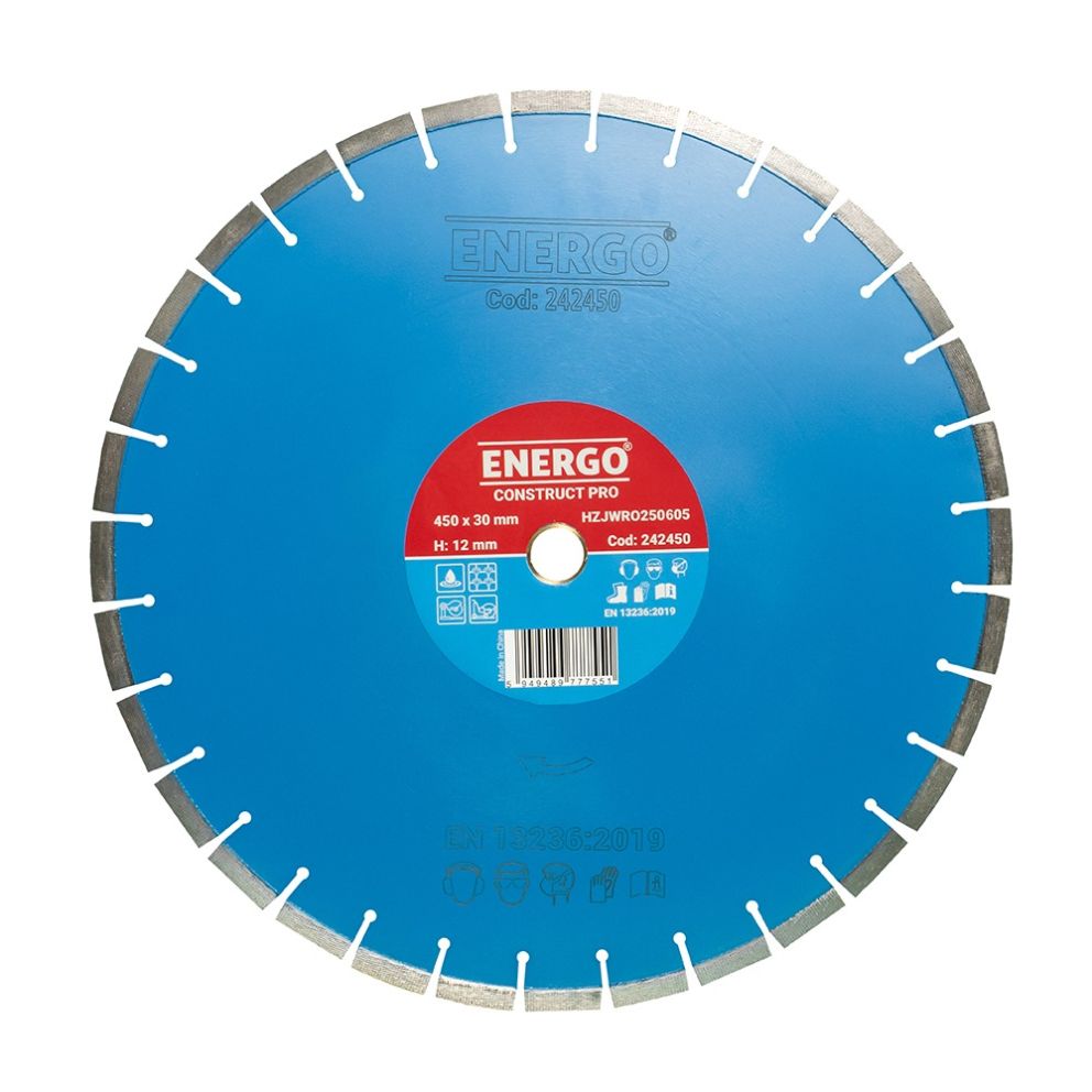 | Caracteristici suplimentare | Inaltimea sectorului diamantat: 12.0 mm Mod de utilizare: utilizare umeda Recomandat pentru utilaj: masina mobila de taiat beton/asfalt cu motor termic sau electric mese de debitat placi/dale/blocuri cu cap taiere deasupra pe sine de glisare |