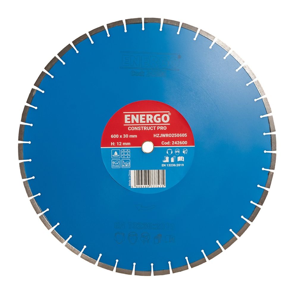 | Caracteristici suplimentare | Inaltimea sectorului diamantat: 12.0 mm Mod de utilizare: utilizare umeda Recomandat pentru utilaj: masina mobila de taiat beton/asfalt cu motor termic sau electric mese de debitat placi/dale/blocuri cu cap taiere deasupra pe sine de glisare |