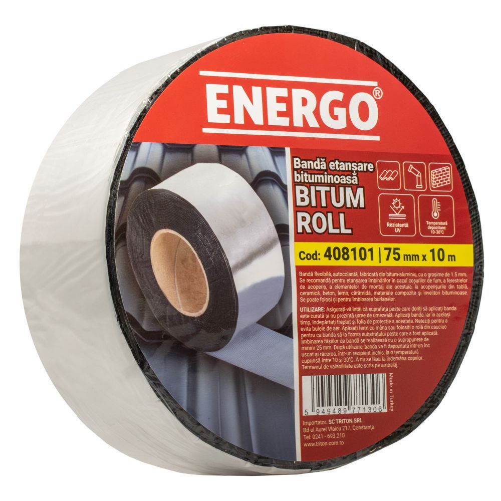 Banda etansare bituminoasa BITUM TAPE folie aluminiu latime 75mm L-10m g-1.5mm rezistenta UV pentru hidroizolatii ENERGO