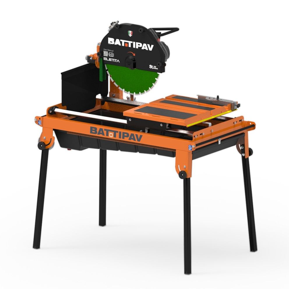 Elemente constructive distinctive | Roti pentru transport, Picioare rabatabile, Pompa de apa, Posibilitate reglare unghi de taiere, Posibilitate reglare adancime de taiere |