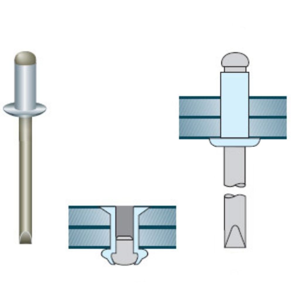 | Aplicatii | Asamblarea panourilor, reparatii, montajul pieselor pe profile metalice. Asamblari nedemontabile unde nu este acces decat la una din partile materialului. |