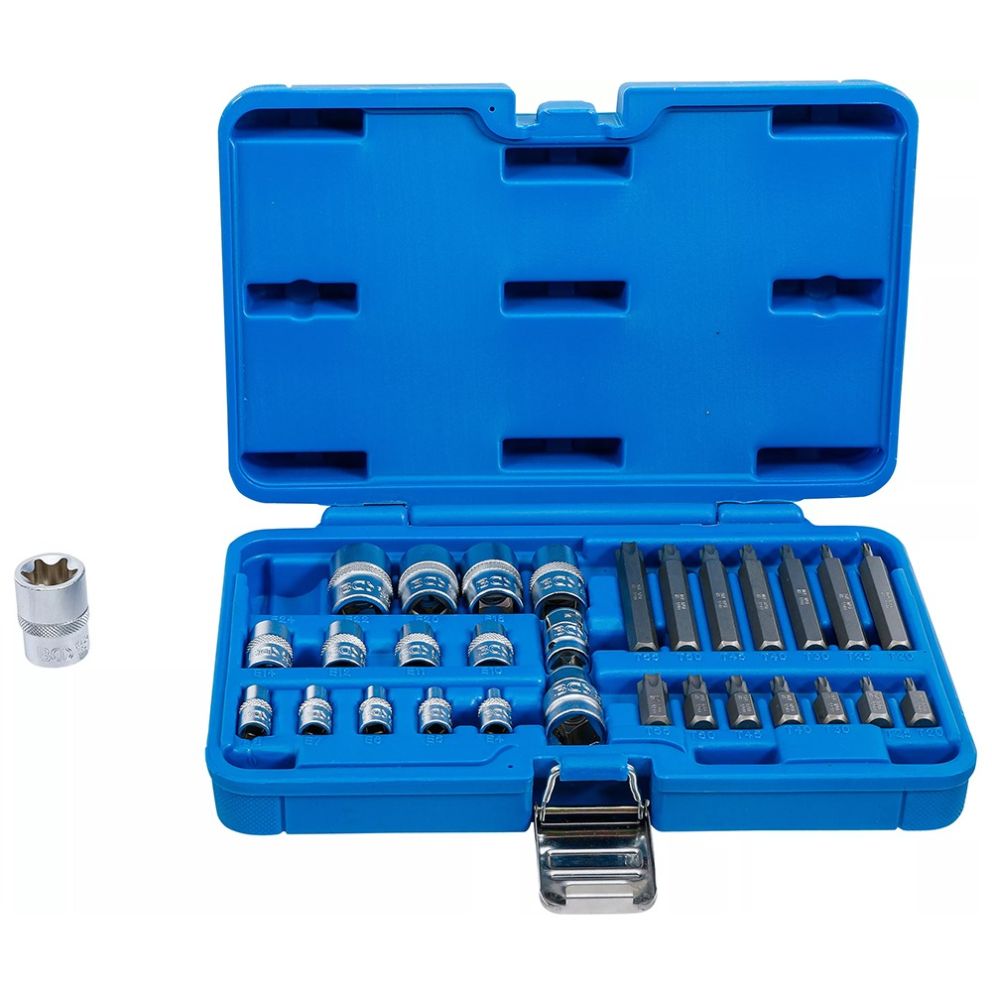 | Setul de livrare | 7 biti prindere hexagon exterior 3/8" lungime 30 mm tip TX: TX20, TX25, TX30, TX40, TX45, TX50, TX55 7 biti prindere hexagon exterior 3/8" lungime 75 mm tip TX: TX20, TX25, TX30, TX40, TX45, TX50, TX55 5 chei tubulare 1/4" cu profil Tip E: E4, E5, E6, E7, E8 4 chei tubulare 3/8" cu profil Tip E: E10, E11, E12, E14 5 chei tubulare 1/2" cu profil Tip E: E16, E18, E20, E22, E24 1 adaptor patrat 1/2" - hexagon 3/8" 1 adaptor patrat 3/8" - hexagon 3/8" |