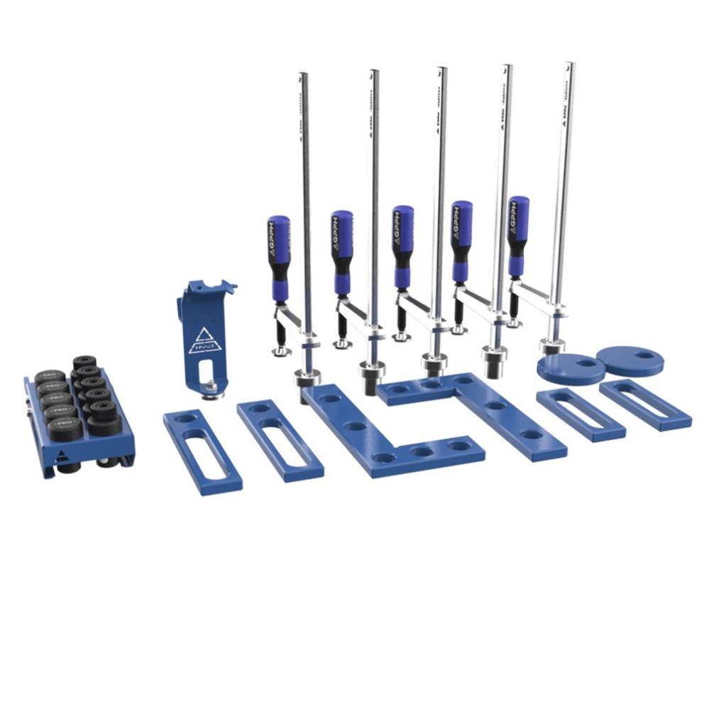 | Setul de livrare | Menghina de fixare x 5 bucati Opritor 150 mm x 2 bucati Opritor 225 mm x 2 bucati Disc D-100 mm x 2 bucati Dispozitiv forma L 275x150 mm x 2 bucati Surub de fixare x 5 bucati Pin de pozitionare x 5 bucati Suport pentru pistolet x 1 bucata Suport pentru stifturi x 1 bucata |