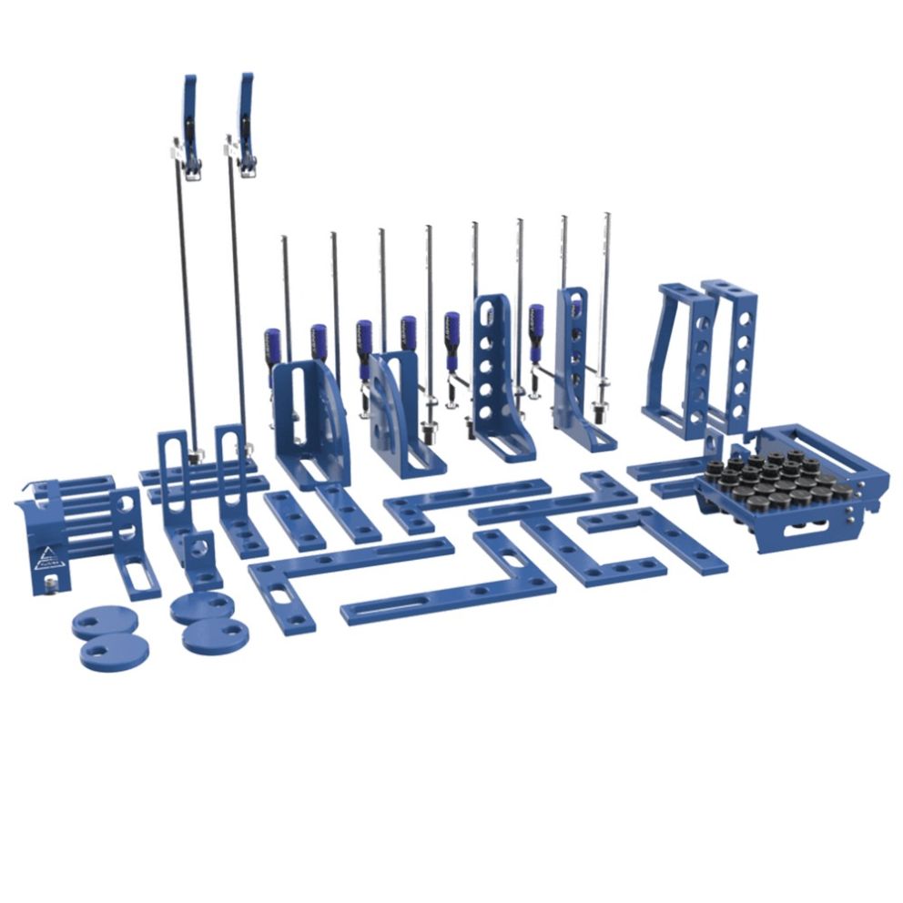 | Setul de livrare | Menghina de fixare x 8 bucati Menghina de fixare cu parghie x 2 bucati Opritor 150 mm x 4 bucati Opritor 225 mm x 2 bucati Opritor 260 mm x 2 bucati Disc D-100 mm x 4 bucati Dispozitiv forma L 275x150 mm x 2 bucati Dispozitiv forma L 320x150 mm x 2 bucati Dispozitiv forma L 350x250 mm x 2 bucati Sina unghiulara 75x75 mm x 1 bucati Sina unghiulara 75x185 mm x 2 bucati Sina unghiulara 125x185 mm x 1 bucata Sina unghiulara 185x175 mm x 2 bucati Sina unghiulara 200x200 mm x 2 bucati Sina unghiulara 300x190 mm (dreapta) x 1 bucata Sina unghiulara 300x190 mm (stanga) x 1 bucata Sina unghiulara 200x300x150 mm x 2 bucati Surub de fixare x 10 bucati Pin de pozitionare x 10 bucati Suport pentru pistolet x 1 bucata Suport pentru stifturi M x 1 bucata Suport pentru cleme M x 1 bucata Suport plat x 1 bucata |