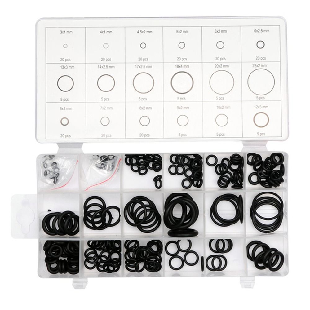 | Setul de livrare | Contine urmatoarele dimensiuni (diametru ext.): 20 inele de etansare 3 mm, grosime 1 mm 20 inele de etansare 4 mm, grosime 1 mm 20 inele de etansare 4.5 mm, grosime 2 mm 20 inele de etansare 5 mm, grosime 2 mm 20 inele de etansare 6 mm, grosime 2 mm 20 inele de etansare 6 mm, grosime 2.5 mm 20 inele de etansare 6 mm, grosime 3 mm 20 inele de etansare 7 mm, grosime 2 mm 20 inele de etansare 8 mm, grosime 2 mm 5 inele de etansare 9 mm, grosime 2 mm 5 inele de etansare 10 mm, grosime 2 mm 5 inele de etansare 12 mm, grosime 3 mm 5 inele de etansare 13 mm, grosime 3 mm 5 inele de etansare 14 mm, grosime 2.5 mm 5 inele de etansare 17 mm, grosime 2.5 mm 5 inele de etansare 18 mm, grosime 4 mm 5 inele de etansare 20 mm, grosime 2 mm 5 inele de etansare 22 mm, grosime 2 mm |