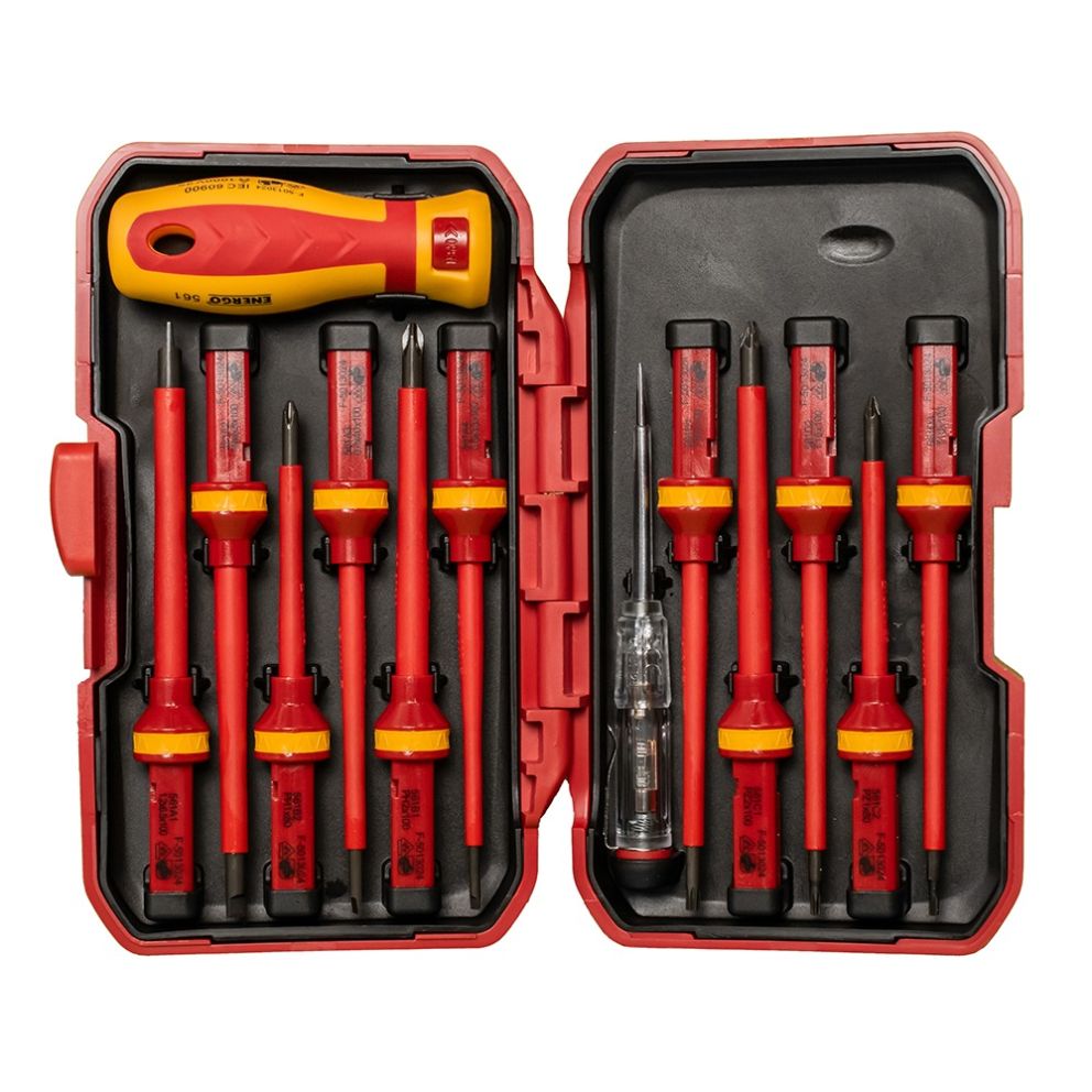 | Setul de livrare | Cutie plastic 1 x PH1 - 80 mm 1 x PH2 - 100 mm 1 x PZ1 - 80 mm 1 x PZ2 - 100 mm 1 x dreapta 0.5x3.0 - 100 mm 1 x dreapta 0.8x4.0 - 100 mm 1 x dreapta 1.0x5.5 - 100 mm 1 x dreapta 1.2x6.5 - 100 mm 1 x TX10 - 100 mm 1 x TX15 - 100 mm 1 x TX20 - 100 mm 1 x maner bimaterial 1 x tester |